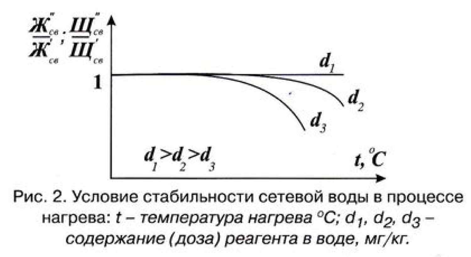Графически условие стабильности сетевой воды в процессе нагрева изображено на рис, 2.