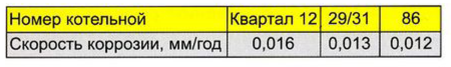 Таблица. Результаты измерения скорости коррозии в котрах ТВГ-8 ОАО «Зеленодольские ПТС».