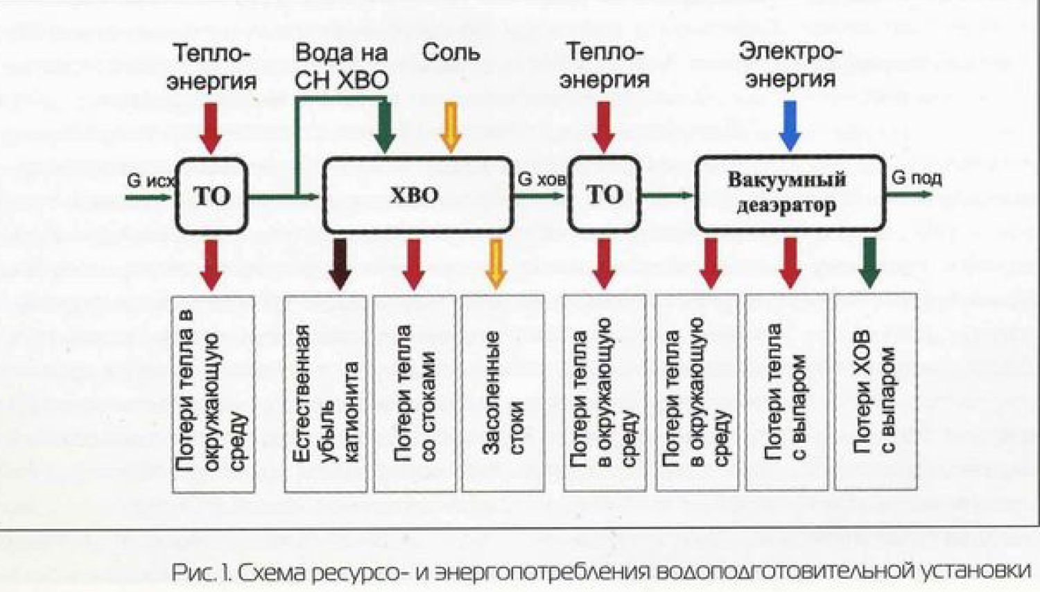 В отечественной теплоэнергетике для предотвращения различного рода отложений и коррозии подготовка лодпиточной воды систем теплоснабжения в общем случае включает стадии умягчения воды и последующей ее деаэрации. Для обеих стадий обработки воды характерно значительное и чрезвычайно неэффективное ресурсо- и энергопотребление.(рис. 1)