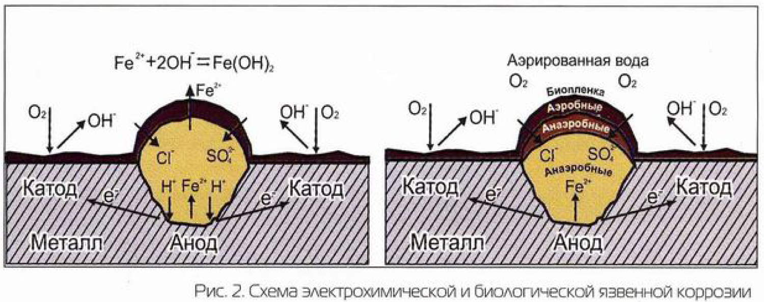 Считается, что в системах горячего водоснабжения до 30 % повреждений в результате внутренней коррозии связаны с воздействием на металл микроорганизмов или продуктов их жизнедеятельности. По данным последних исследований, внутренняя коррозия в трубопроводах протекает наиболее сильно, если в процессе участвуют микроорганизмы. Механизм биологической коррозии металлов исследован мало и окончательно не установлен. Сложность борьбы с биокоррозией металлов заключается в том, что очень трудно различить обычную физико-химическую коррозию и микробиологическую коррозию.