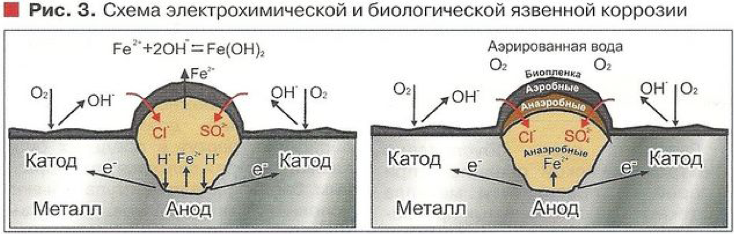 Более 25% всех повреждений тепловых сетей обусловлено внутренней язвенной коррозией. Отложения в трубопроводах представляют «адскую» смесь минеральных солей, продуктов коррозии и целых колоний различных бактерий. В системах горячего водоснабжения до 80% повреждений от внутренней коррозии связаны с воздействием на металл микроорганизмов или продуктов их жизнедеятельности.
