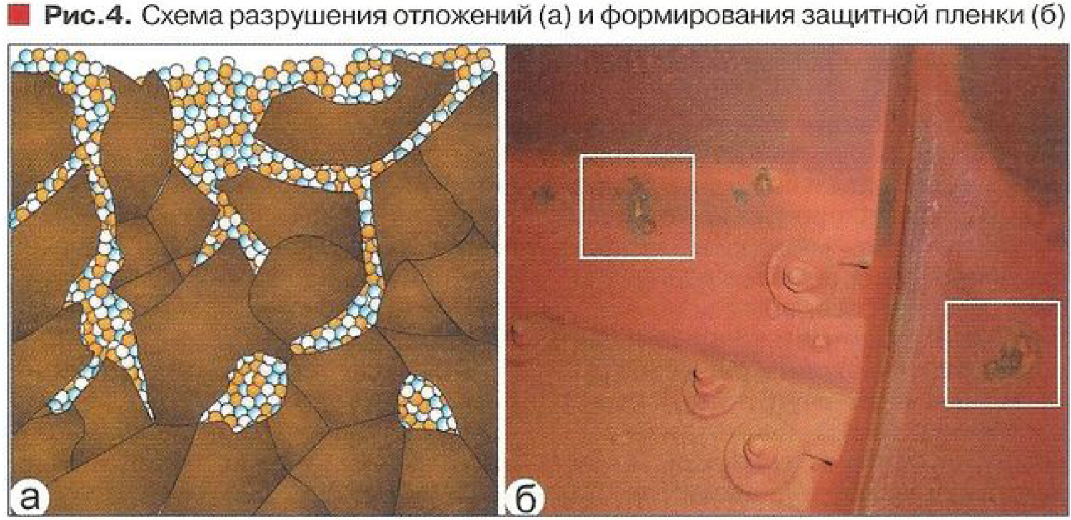Способность композиции разрушать отложения лежит в основе технологий отмывки систем теплоснабжения «на ходу» и ускоренной (гид-ропневмохимической) промывки.